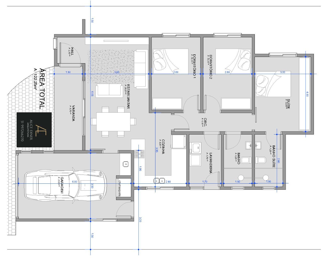 * 122 m2 de área construída;